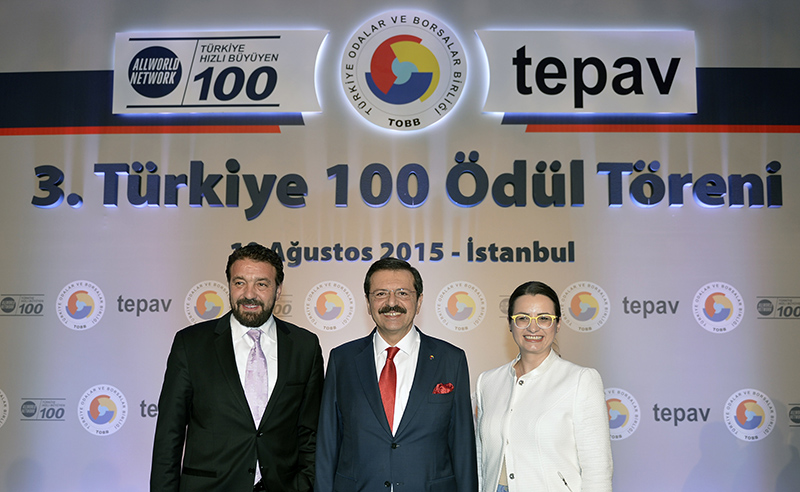 TOBB öncülüğünde, TEPAV ve AllWorld Network işbirliğinde yapılan Türkiye’nin en hızlı büyüyen şirketleri yarışması “Türkiye 100″ sonuçlandı. TOBB Başkanı M. Rifat Hisarcıklıoğlu, bu çalışmaya büyük önem verdiklerini ve geleneksel hale getireceklerini belirterek, “Çünkü büyüyen her şirket Türkiye’nin geleceğine yatırımdır” dedi.