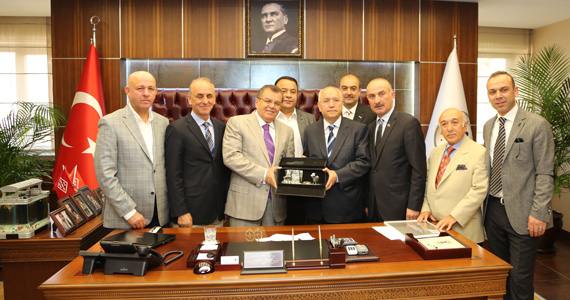11 HAZİRAN 2014- Ankara Ticaret Odası (ATO) Yönetim Kurulu Başkanı Salih Bezci, Ankara Alışveriş Festivali (Ankara Shopping Fest) İcra Kurulu üyeleriyle birlikte Yenimahalle Belediye Başkanı Fethi Yaşar’ı makamında ziyaret etti. Bezci, sorun çözen yaklaşımı nedeniyle belediye işlemlerini kolaylaştıran Belediye Başkanı Yaşar’a teşekkürlerini sundu.